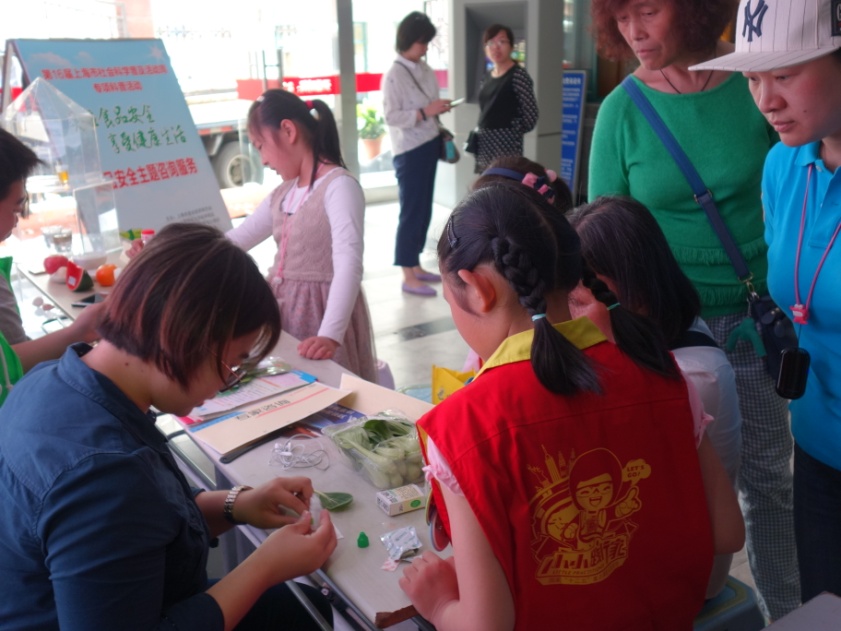 5月20日,由上海海洋大学和上海市渔业经济研究会主办,上海市杨浦区人民政府五角场街道办事处和上海海洋大学“科学商店”承办的第十六届上海市社会科学普及周食品安全专项科普活动在五角场社区文化活动中心顺利举行。活动围绕“关注食品安全,享受健康生活”主题,搭载食品安全检测的最新实用科技,旨在为上海广大市民提供食品安全检测和食品营养健康主题咨询服务。上海海洋大学食品学院团委志愿者工作站的8名志愿者在食品营养和食品安全领域的专业教师的带领下参加了本次活动。