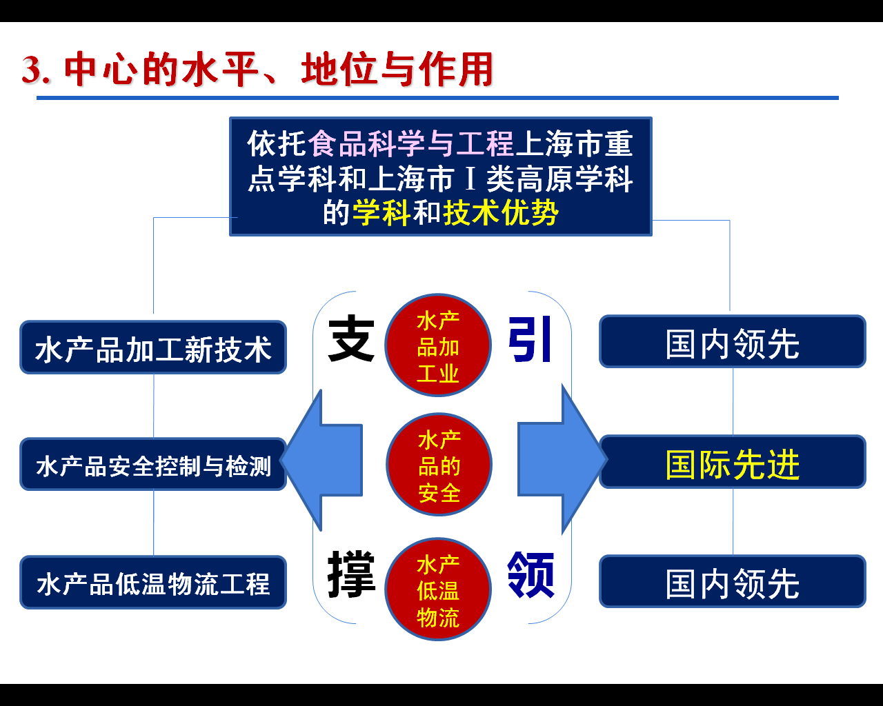 以中心为平台,在服务行业企业、人才培养、对外交流与国际合作等方面全方位开展工作,努力为企业的科技创新服务,为我国食品产业的可持续发展、(水产)食品安全的保障、(水产)食品品质控制与提升培养高级专业人才,为国内外水产品加工及贮藏领域的研究提供高层次的科学研究与交流平台,为21世纪我国(水产)食品的供应、保障及相关领域培养高级人才和提供一流科技成果,为确保上海市水产品市场的安全提供重要的技术保障,为建设成为国家级工程研究中心奠定良好的基础。