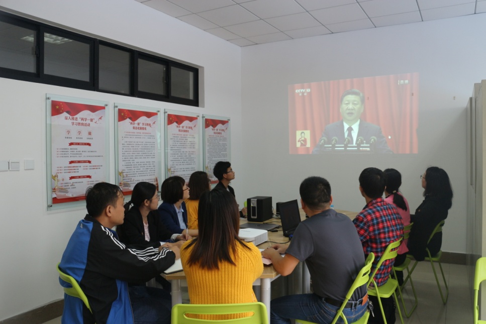 教工第六党支部宣传委员邱伟强老师激动地说道:“记得从小就一直背‘我国社会的主要矛盾是人民日益增长的物质文化需要同落后的社会生产之间的矛盾’,这是社会主义初级阶段的特征。十九大大终于听到习主席阐述的新时代特征,报告还有很多的亮点和新思路,新思想,作为这个新时代的参与者,见证者,确实感到很激动。”