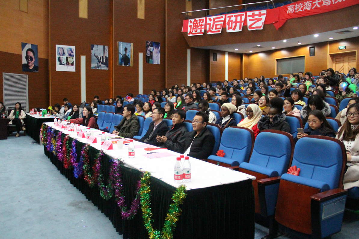 虽然冷风习习,但是挡不住同学们如火的热情。下午2时,在幽默帅气的赵明老师和温婉优雅的李少丽同学的精彩主持下,才艺大赛决赛正式拉开序幕。第一个参赛节目是余凡等人带来的小品《考试风云录》,小品幽默诙谐引得观众阵阵发笑,旨在弘扬“科学道德与学术诚信”的精神,倡议遵守学术规范,摒弃学术不端行为;“水畔暮山衔夕阳,归舟返棹沐霞光。渔歌阵阵相呼应,声响调高传远方。”身着旗袍的洪莹莹弹奏了一曲《渔舟唱晚》,卿本佳人在微暗的灯光下抚琴,使得观众们在中国的古典音乐中如痴如醉,宛若置身其中;石一茜的《表演您的故事》,为我们讲述了“他和她的故事”,讲述了爱情和陪伴;温贝妮的《read all about it》,沈玺钦的《暗香》歌声悠扬,嗓音独特;童文涛的poppin秀,从开始的带着白色面具的机械舞到后面扯掉假面轻快的舞姿,都显示出他舞艺精湛的功底,将这场大赛推向了高潮,陈梦玲等人的曼妙舞姿演绎出独特的异域风情;谢静怡的一首《房间》,用声音温暖了观众的心,将比赛又推向了另一个高潮,作为压轴出场的二胡赛马和歌曲串烧,谢明阳对二胡快弓、跳弓技巧的运用,拨弦、颤音的运用,给观众呈现了一幅生动热烈的赛马场,刘峰和冀东用他们磁性的歌声给这场视听盛宴画上了一个圆满的句号。