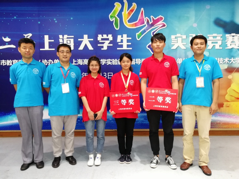 本届市级竞赛的参赛学生名单是在校级竞赛之后,通过组委会的软件系统以抽签方式产生的,三名参赛同学中的两名都没有学习过物理化学实验和波谱分析课程,而且因为课程时间冲突,也没有系统参加之前的校内培训。面对这种不利局面,化学系安排了四名老师组成竞赛指导小组,帮助学生进行了强化训练,学生们的化学实验能力得到进一步提高,也对参赛有了更好的心理准备。面对强大的竞争对手,经过理论和实验考试,我校参赛学生最终取得令人满意的好成绩。