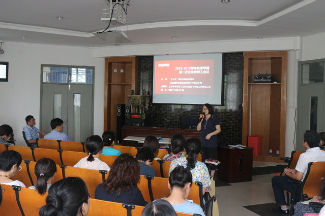 9月11日下午1:00,食品学院新学期全院大会在A108举行,食品学院全体教职工出席了会议,会议由食品学院党委书记陈慧主持。