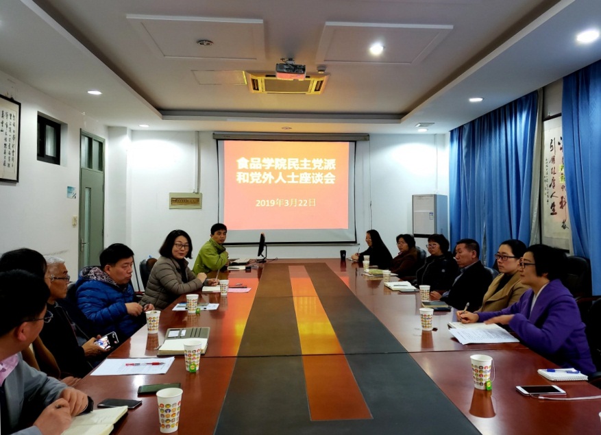 为进一步健全民主党派和党外人士知情明政、工作联系、协商反馈的工作机制,食品学院于3月22日邀请了民盟、民建、致公党、九三学社以及知联社的十多位代表围绕学院发展规划、教育教学改革、师德师风建设、教职工民生问题等主题召开专题座谈交流,旨在通过充分发挥统一战线作用,进一步集中智慧、凝聚力量,更好地服务于中心工作。会议由院党委书记陈慧主持,谢晶院长、孙红刚副书记、赵勇副院长、院教代会团长吴文惠老师参加了座谈交流活动。