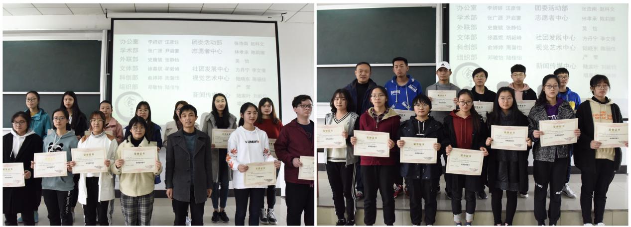 最后,出席嘉宾依次为优秀团学骨干、综合提升部门、学风领航部门颁奖。