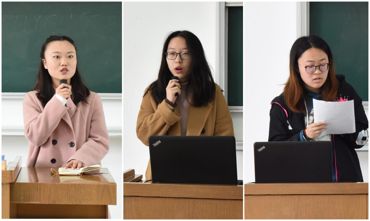 随后,食品学院学生会主席傅子昕、团委学生副书记景卓然和团委学生副书记衣楸雨分别从学生骨干队伍建设、各部门成绩比对和学风督察三个方面进行汇报。傅子昕同学首先感谢上一学期各位团学骨干的努力付出,随后强调学生骨干“学”字当头,需要严格要求自己,在忙完团学工作时不忘回归课堂,刻苦学习。景卓然同学对上一学期团学骨干的成绩进行了分析,对整体成绩退步的部门强调部长要在学习上起到引领和带头作用,平衡好学习与工作的关系。衣楸雨同学通过数据对比,展现学风督察对食品学院学风建设的推动作用,她希望在新学期大家能继续保持这份责任心,为学院的学风建设保驾护航。