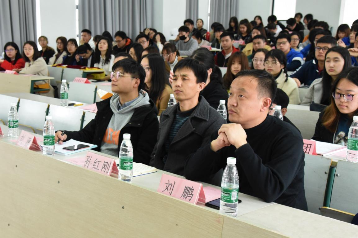 在奏唱校歌后,孙红刚老师深刻剖析了当前我院学生自身发展所面临的机遇与挑战,阐述了在全面推进“双一流”的新时代开展教育思想大讨论、推动同学们研讨“我想成为什么样的人”的必要性。他指出,学院团委学生会的各级学生骨干应作为表率,主动发挥思想引领的作用,在学风方面起模范带头作用,将回归常识、回归本分、回归初心、回归梦想的行动感染身边的每一位同学。同时把我院新时代教育思想大讨论的成果在学代会等平台上有力发声,强化“立德修身、刻苦学习,堪当民族复兴大任的时代新人”的责任感和使命感,以实际行动做到个人和社会价值的统一。