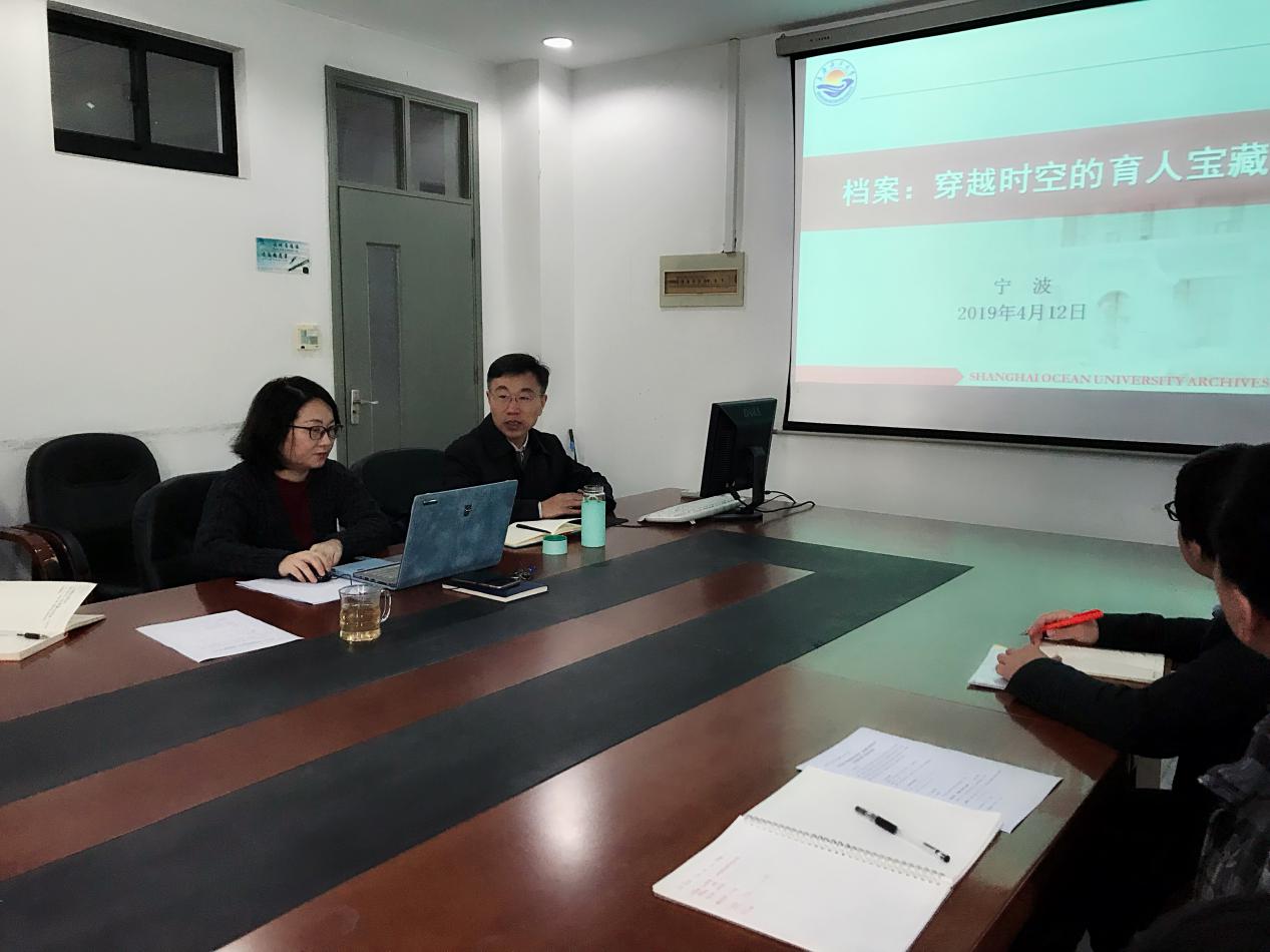 活动邀请了校档案馆馆长、第一联合直属党支部书记宁波教授做了题为“穿越时空的育人资源”的主旨报告,宁波从1912年张謇、黄炎培创办江苏省立水产学校时在《申报》上刊登的招生信息讲起,用一张张饱含厚重历史的档案照片展示了上海海洋大学的沧桑巨变,也让在座的老师们感受到“勤朴忠实”的校训在一代代海大人的传承中化为文化基因的力量。用一个个海大的故事讲述做好档案工作对学校发展、内涵积淀、文化传承、人文教育的重要意义。“青灯黄卷,默默无闻”是宁波馆长对档案工作的总结,档案工作完成不在一时,贵在平时,他希望大家能坚守兰台,全面贯彻落实全国教育大会精神,更加自觉地使高校档案工作融入和服务于我校“立德树人”的根本任务和“双一流”建设的工作。