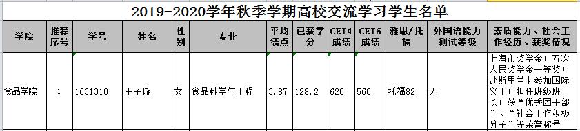 根据《关于中国上海海洋大学(SHOU)与美国密西根州立大学(MSU)合作项目的学生招募选拔通知》,经个人申请,食品学院审议,共1位同学符合各项指标,特此公示。公示时间2019年4月29日-2019年5月5日。