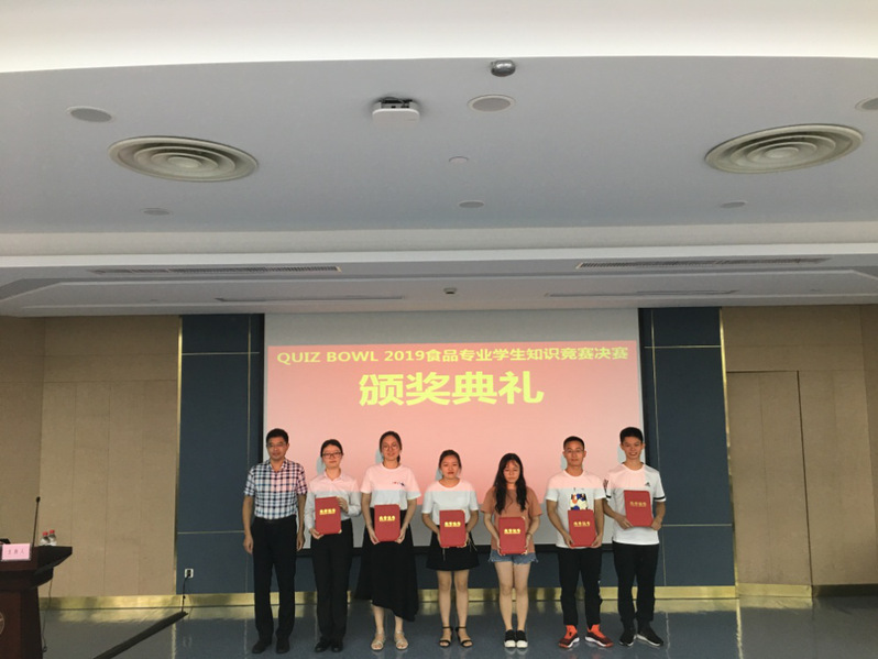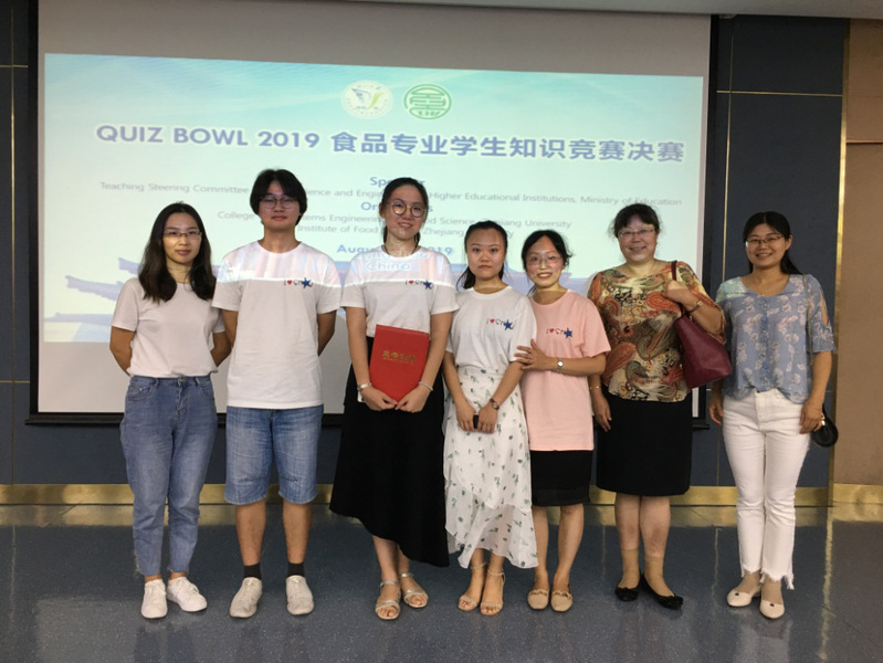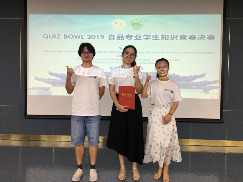 为进一步提升大学生食品专业水平,强化食品领域的国际化培养方式,教育部高等学校食品科学与工程类专业教学指导委员会联合浙江大学生物系统工程与食品科学学院、浙江大学馥莉食品研究院,秉承“提升我国在国际食品领域的影响力和话语权,为中国乃至全球食品行业培养专业人才”的宗旨,举办了QUIZ BOWL 2019食品专业学生知识竞赛活动。比赛分为初赛与决赛两场。本次竞赛范围为国内设有食品专业的所有高等院校,参赛队员是校内在读的食品类专业全日制本科生,竞赛题目内容分为食品安全类、基础食品科学类、应用食品科学类与食品和人类营养类四大类。