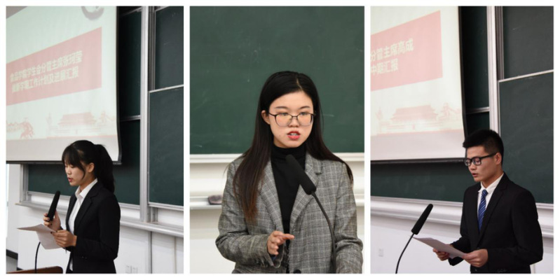 2018届食品学院团委学生副书记李为康和食品学院学生会主席傅子昕分别作了团委学生会的工作总结。他们在总结中十分感谢同学们能利用课余时间为食品学院团学工作添砖加瓦,同时不忘叮嘱新团学干事要在工作中、在解决问题时不断学习,相信大家一定能在完成工作的同时有所收获。