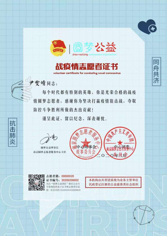 于是,她决定为这次疫情贡献自己的一份力量。武汉不招募青年志愿者,所以她通过网上志愿者的方式,加入了圆梦志愿者团队,她每日志愿者打卡签到。帮忙设计海报、制作宣传视频,让更多的人关注疫情,保护自己和家人。虽然无法前往一线,但是她用自己方式,为这一次的战“疫”贡献星火之力。