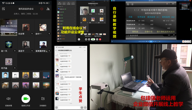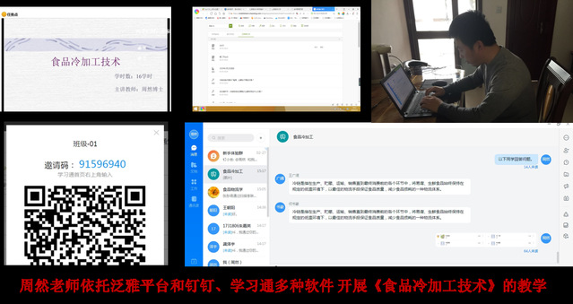 加工系主任包建强大胆尝试,利用动画设计软件录制视频授课材料,然后运用企业微信的在线会议功能组织线上授课。化学系熊振海老师依托智慧树尝试直播授课,制冷系周然老师则整合了泛雅平台、钉钉和学习通多种软件的优势,多管齐下、推进在线教学……