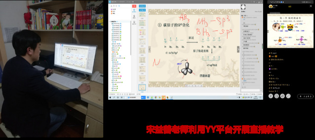 宋益善副院长则利用YY语音通讯软件语音模式中的教学模板开设《有机化学A》教学专用频道进行直播授课,将班长设置为管理员以协助老师维护课程运行,通过右侧的互动区实现师生实时语音和文字互动,利用画笔功能在PPT界面通过书写进行解答。同时,他通过学校泛雅平台和建立班级微信群等措施发布相关教学信息,课后布置作业使学生进一步巩固知识点;批改作业后,将学生答题出现的错误进行总结,以易错点的形式进行讲授,使学生加深对知识的理解。