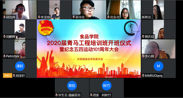 5月4日下午,上海海洋大学食品学院2020届“青年马克思主义者培养工程”开班仪式暨纪念五四运动101周年大会在线上举行。食品学院党委副书记孙红刚,学院团委书记刘源、团委副书记茜丽尔,学院团学骨干及青马班全体成员参与线上互动交流,会议由刘源老师主持。