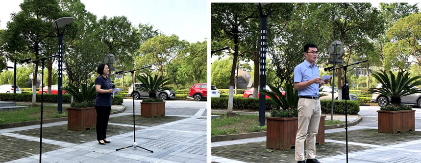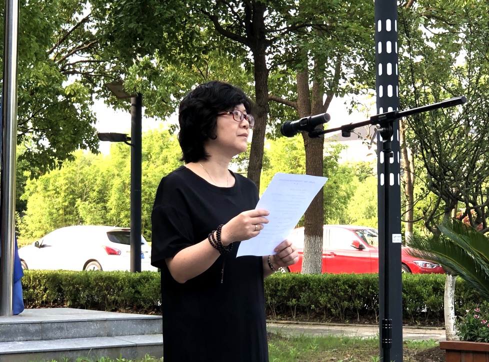 国歌奏毕,学院党委书记陈慧老师发表讲话。她首先回顾了我院师生在新冠肺炎疫情严峻的形势面前积极防范、守岗尽责,学院领导做好统筹部署,学工战线做好关心关怀,教学战线做好线上教学,科研战线做好学术攻关……她指出2020的不平凡在于我们每一个人都敢于直面艰难的局面,在于我们每一个人都能够以大局为重,在于我们每一个人都甘于奉献,在于我们每一个人都想为推动社会进步贡献自己的一份绵薄之力……我们经历了太多太多,也收获了很多很多。如今,在举国欢庆党的99华诞之际,迎来我院的升旗仪式,何其荣幸。如何让初心薪火相传,聚焦立德树人根本任务、培养好“强国一代”是我们面临的艰巨任务。习总书记的“心有所信,方能行远”为我们指明了方向,以史为鉴,可以知兴亡;资政育人,方能传千秋。我们将从历史中汲取智慧和力量,不断强化使命担当,以党建工作为总揽,全院师生坚发展信心,鼓足发展干劲,促进学院更快更好地发展。