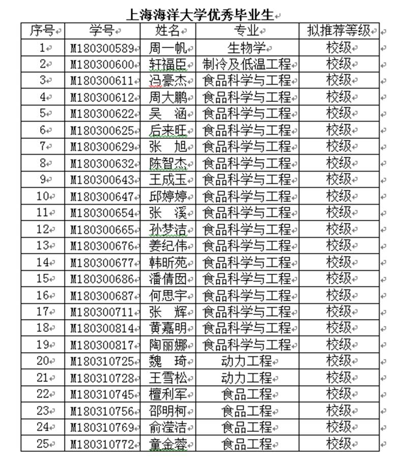根据《上海市教育委员会关于做好2021年度上海市普通高等学校优秀毕业生评选工作的通知》、《上海海洋大学研究生优秀毕业生评选细则》、《关于2021届毕业研究生优秀毕业生评选通知》等的精神。经本人申请、学院审核,拟推荐如下研究生参与2021年上海市优秀毕业生、上海海洋大学优秀毕业生的评选,现将名单予以公示。