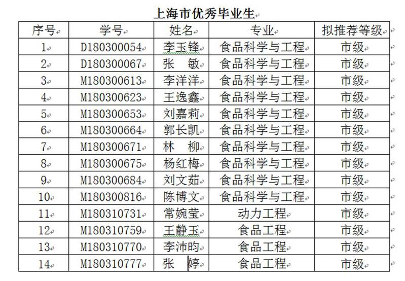 如对拟推荐优秀毕业生(研究生)评选名单有异议,请在公示期内向上海海洋大学食品学院党委书记陈慧反映。