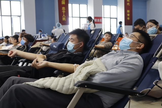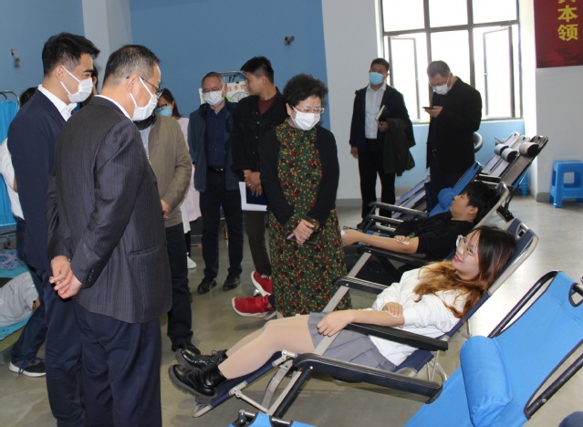 在献血区,同学们接力般地撸起袖子奉献爱心时,前来慰问的老师们时刻关注着献血同学们的身体状况,耐心、仔细地叮嘱注意事项,细声的安抚缓解了同学们的紧张情绪,这种言传身教、身体力行是弘扬甘于奉献精神、为群众办实事的最佳典范。