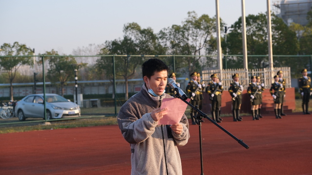 日出东方,红旗飘扬。为了深入学习贯彻党的十九届六中全会精神,重温过往、前瞻未来,丰富思想政治教育形式,11月15日,上海海洋大学食品学院在临港校区东操场举行了“请党放心 强国有我”主题升旗仪式。学院教师代表以及全体本科生、研究生同学参加升旗仪式。升旗仪式由食品学院团委学生负责人徐润奕主持。