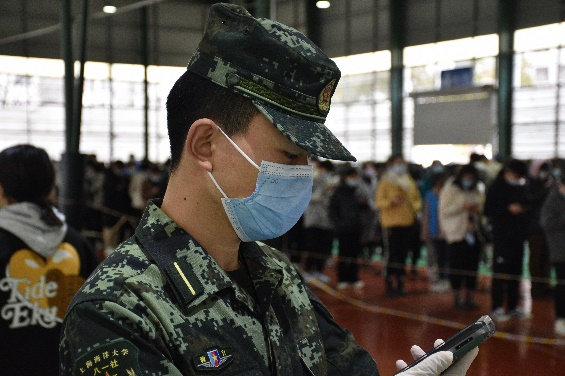 俞凡,退伍学生,在校期间积极参与各项志愿服务活动,在近期学校的核酸检测中负责扫码登记的工作。入伍期间,他曾在节假日到外滩执勤进行游客疏导,进博会期间他负责内外围安保的工作,安徽和河南特大洪灾期间,他不顾危险奔赴前线,贡献了自己的一份力。