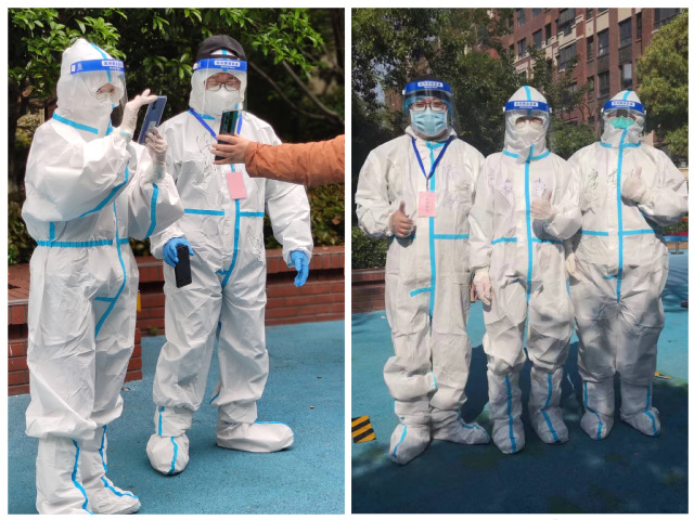 近一个月来,食品学院党委委员刘鹏和本科生第三党支部书记刘源入驻学生社区,穿上“大白”化身为宿管员、快递员、保洁员、检测志愿者,牢牢将病毒隔离在外,保护每一位同学的健康和安全。为了节省防护服,他们一穿就是12个小时以上,在这期间完成送餐、送药、清运垃圾、保洁、核酸检测等工作,和社区内的师生们一起用坚守、担当和奉献,在战“疫”一线践行初心使命。