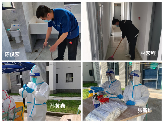校内的学生党员和入党积极分子们积极配合学校的疫情防控工作,他们作为层长和寝室长引导广大同学们健康、和谐地度过每一天足不出户的日子,并且主动提出要为学校抗击疫情出一份力,如学生党员龙习曌、林宏程、陈俊宏等在各门厅寝室开展“党员学生齐上阵,打扫卫生共抗疫”活动,入党积极分子张智坤、孙黄鑫穿上大白加入到社区的核酸检测志愿者队伍当中,以各种方式助力学校的疫情防控阻击战。