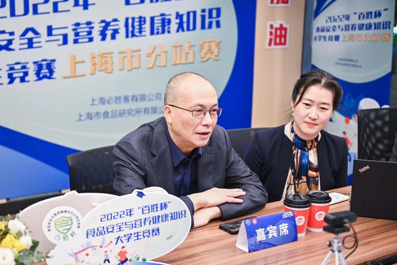 在比赛的最后阶段,上海市食品研究所有限公司总经理吴晓明先生充分肯定及赞扬了各位选手的优异表现,他表示:“大学生作为站在新时代、新技术、新思想最前沿的群体,是学习和传承食品安全和营养健康知识和科学观的中坚力量,更是带动食品安全社会共治的重要群体。希望社会各方可以一起行动起来,不断通过实践来丰富自己的食品安全及营养健康知识。”