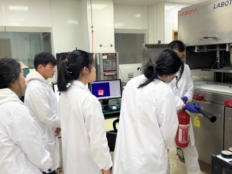 在演练过程中,老师特别强调了加热设备试验中必须有人监守、密切观察温度曲线和腔体内部状况。他现场示范并讲解了二氧化碳灭火器和灭火毯的正确使用方法,以做好应对突发状况的预案,避免意外情况的发生。他还特别提醒同学们要时刻保持警惕,严格遵守实验室的安全操作规程。