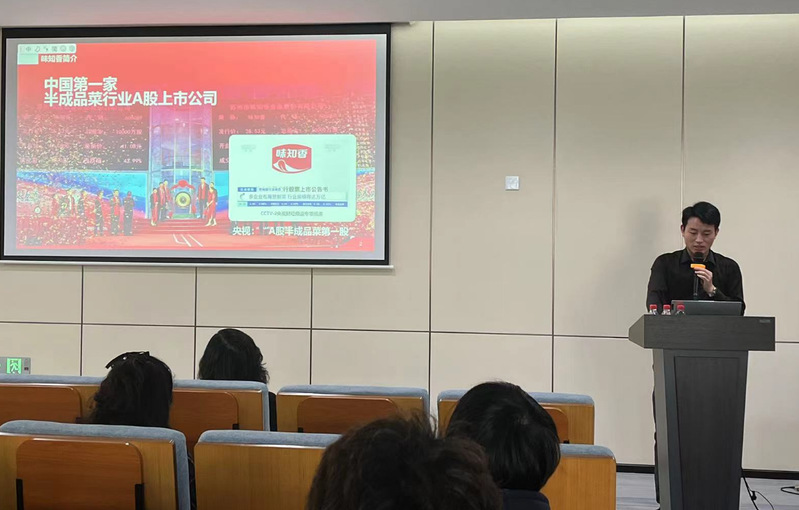 然后,洪涛经理为同学们介绍了“味知香”股份有限公司的品牌体系、销售渠道、品牌优势、产品介绍等企业文化,并从企业角度出发讲解期待学生做出什么样的产品,为同学们的参赛作品方向提供了更加直观的指导。