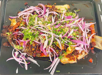 “丝路新肴——巴楚烤鱼”是一款富有地域特色的预制菜品,以草鱼为原料结合传统的烹饪技巧与现代食品加工技术,调制独有配方,使烤鱼既保留了巴楚烤鱼的地道风味又满足现代消费者的健康需求。消费者可以通过微波加热,烤箱炙烤和煎煮的简单烹饪方法进行处理。美味的巴蜀烤鱼以丝绸之路为视野展开,强调了产品的独特文化传承,具有深远的文化底蕴。