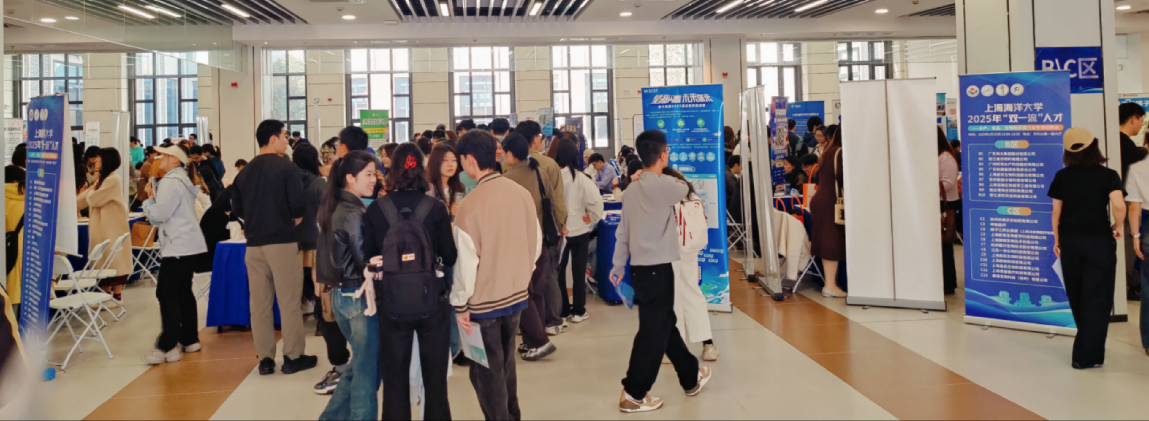 同步举办的"双一流"人才专场招聘会作为学校服务国家战略与行业发展的重点活动,以“产业链对接人才链”为核心设立四个展区,实现毕业生与企业的精准匹配。招聘会吸引了72家优质企业参会,提供了涵盖水产养殖及种业、生物医药、食品、冷链技术等多个专业的就业岗位120类、招聘需求900余人。招聘会现场气氛热烈,学生们手持简历穿梭于各展位,积极了解招聘信息并与企业代表交流,寻找理想岗位。企业HR们则积极向学生介绍公司情况,耐心解答各种问题,与有意向的学生深入沟通。