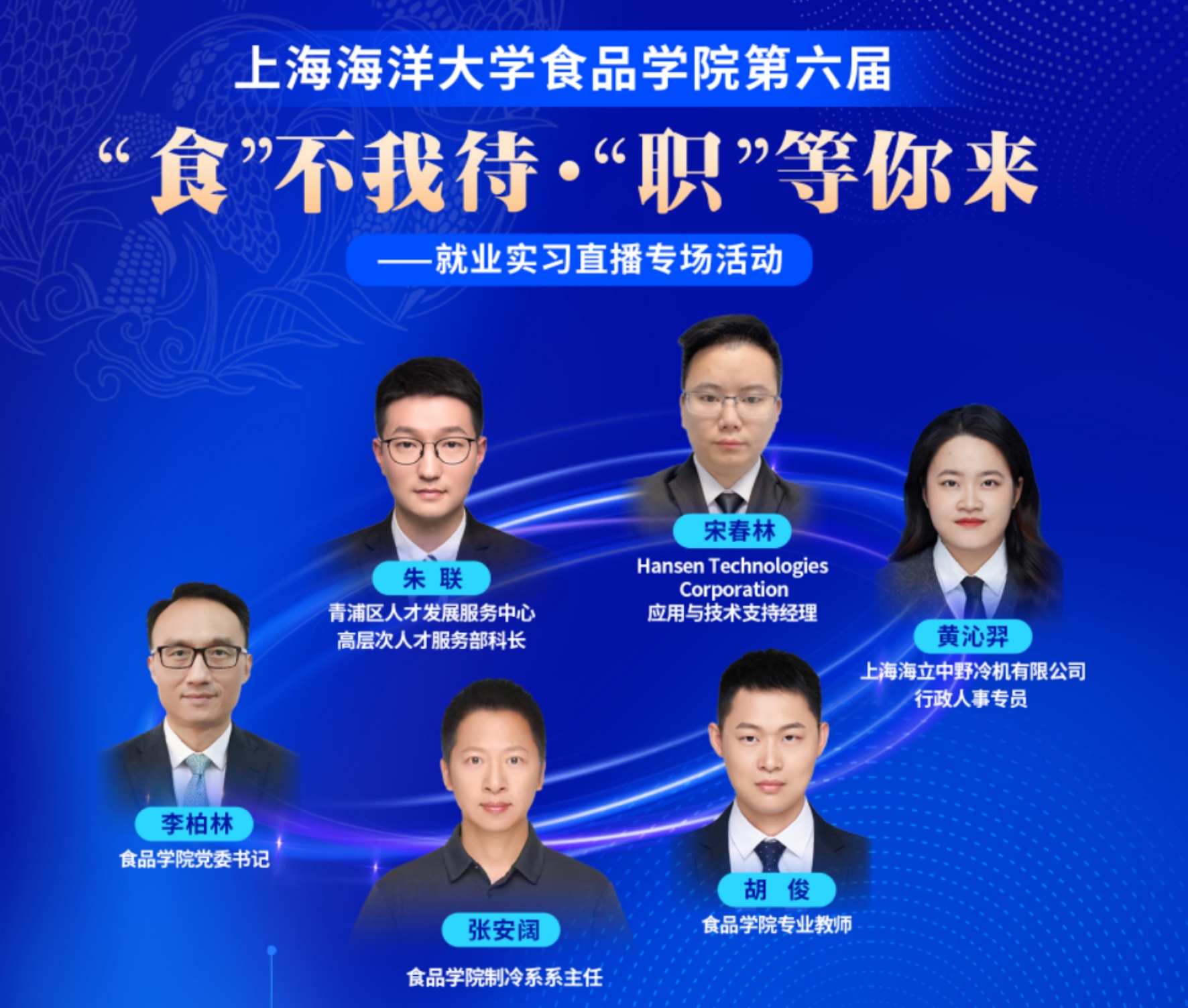 在大学生活动中心就业直播间举行的食品学院第六届"食不能待·职等你来"就业实习直播专场活动中,李柏林书记发表致辞,向合作企业致谢并对毕业生提出殷切期望。活动特邀上海海立中野冷机有限公司、汉森科技有限公司、青浦区人才发展服务中心等企业进行线上宣讲。制冷工程系主任张安阔、专业教师胡俊作为特聘主播,对5名优秀毕业生进行专业推介。毕业生全方位展示科研项目经历、实践能力及职业素养,直播累计观看2383人次,互动数据达20754次点赞、545条弹幕。