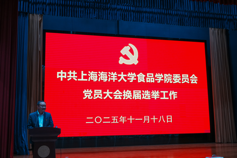 11月18日下午,中共上海海洋大学食品学院委员会换届选举党员大会在大学生活动中心报告厅召开。食品学院全体师生党员参会,原上海海洋大学校长、食品学院教授潘迎捷,校党委组织部周涛峰,党建共建单位代表、企业代表、学院退休老同志代表、学院民主党派与无党派人士代表应邀列席,大会由学院党委副书记刘鹏主持。