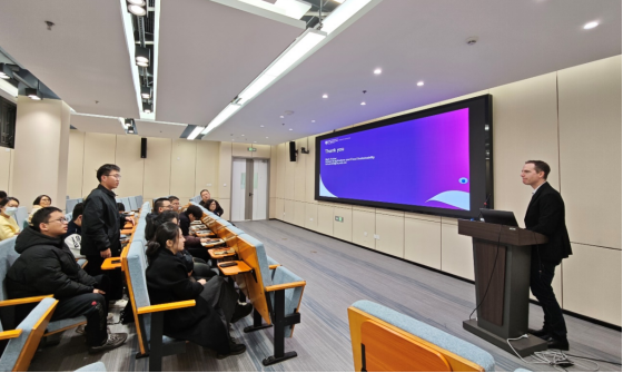 下午13:00,Mark Turner教授在食品学院A106报告厅作题为“乳酸菌的生物发掘:面向食品安全、腐败控制与发酵的应用”的专题讲座。Mark Turner教授系统介绍了昆士兰大学的概况以及其团队利用全基因组测序从果蔬与禽肉中分离、筛选乳酸菌(LAB)的最新进展,重点展示了LAB在抑制即食食品中的单增李斯特菌、控制奶酪霉菌腐败以及提升植物基乳制品酸化与质构等方面的应用案例,并分享了昆士兰大学“食品与饮料加速器”(FaBA)在精准发酵与产业转化方面的经验。报告现场互动热烈,师生就国际学习交流、LAB在水产品中的应用等问题与Mark Turner教授展开深入讨论。