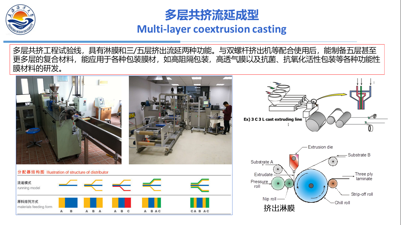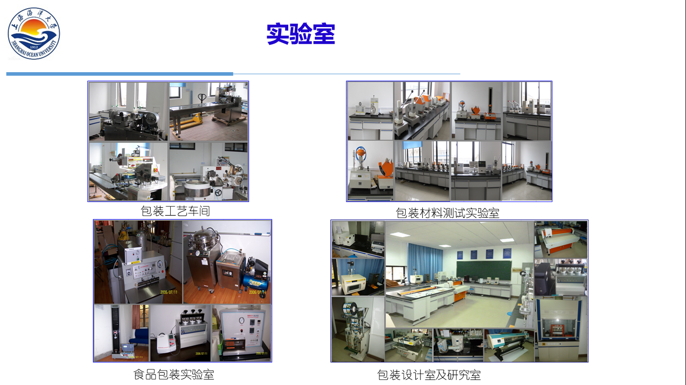 2017年11月,经中国包装联合会塑料包装委员会授牌,在上海海洋大学食品学院包装研究所基础上建立了“中国功能性塑料包装材料研究交流中心”。中心立足于成为全国性塑料包装行业重要的新品研发与生产技术的交流平台,为塑料包装产业技术升级、节能减排、绿色及智能化制造提供技术服务,同时为我校包装工程专业应用型人才的培养提供有力支持。中心设有功能性包装,可食性/水溶性包装,食品包装安全,包装设计四个研究方向,现有教授4人,副教授6人,讲师(实验工程师)3人,助教1人。中心具有实验室面积700平米,大型设备31台套,设备资产总值800余万元。近年来承担、参与国家、省部级课题24项,发表SCI论文40余篇。同时,作为我院应用研究与应用型本科教育的重要力量,与紫江集团、界龙集团等一批行业领头企业建立了长期合作关系,多项专利技术及产品方案实现了技术转让和共同开发,为合作企业的技术升级与产业提升提供了有力支撑。