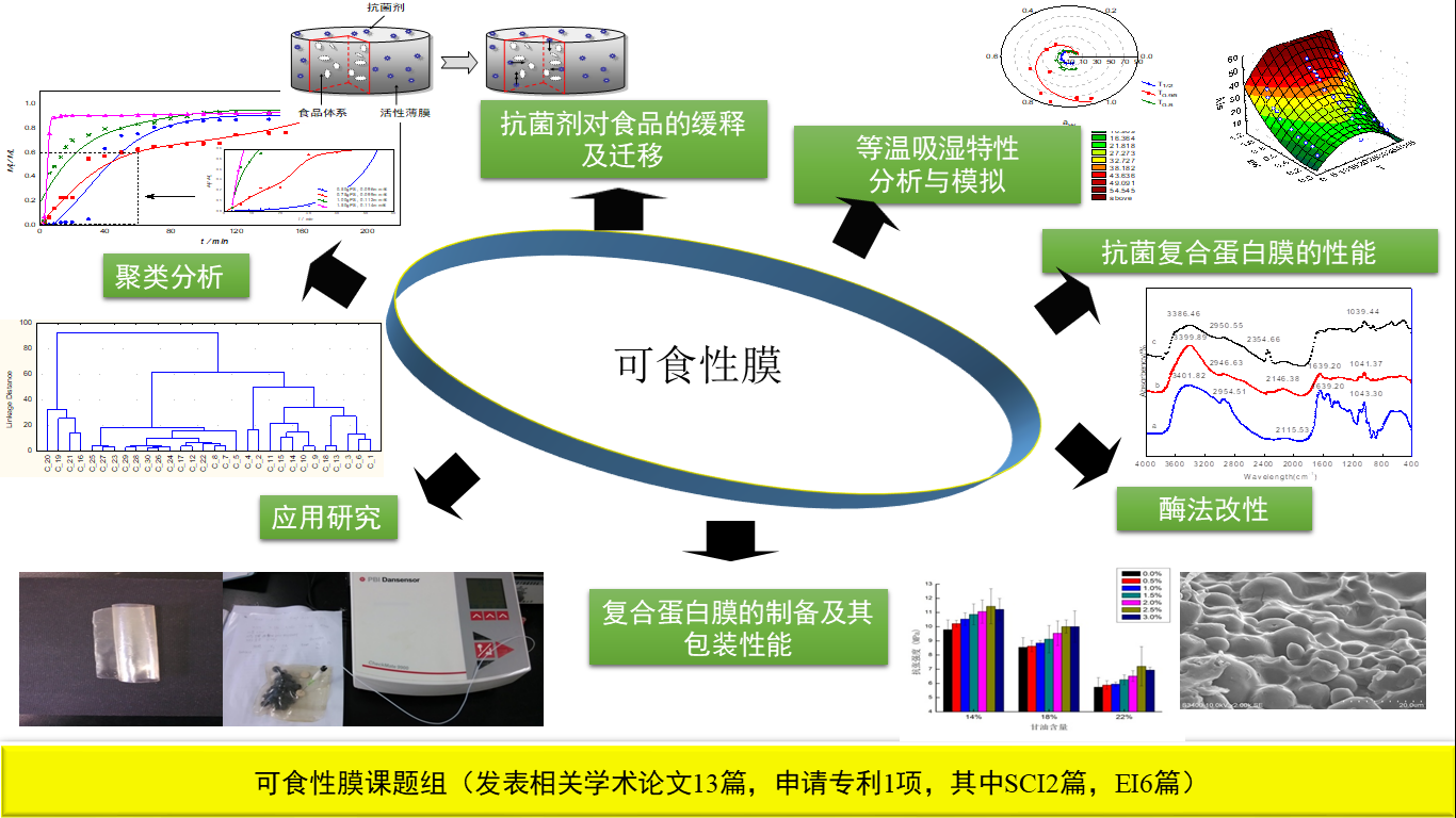 本方向主要研究可食性膜及水溶性流延膜、涂膜在食品保鲜领域的应用,发表核心以上论文20篇,其中SCI论文6篇,并获得发明专利3项。承担、参与多项省部级及横向课题。